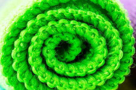 Background made of green curled microfiber material, front view, macro shot.
