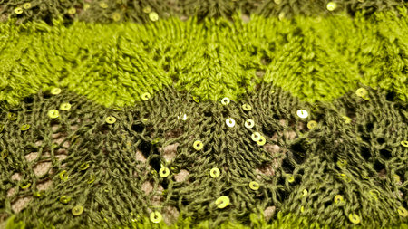 Green lace fabric, close up, macro, background, pattern.