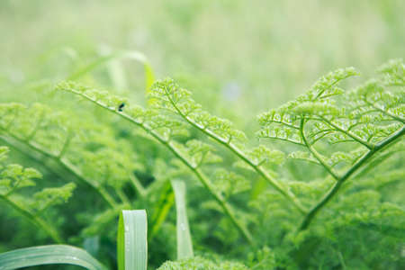 Beautiful ferns green foliage natural flower fern leaves background under sunlight. Natural fern leaves in the morning forest photography. Fern plant background. Bright green leaves texture. Selective focus.