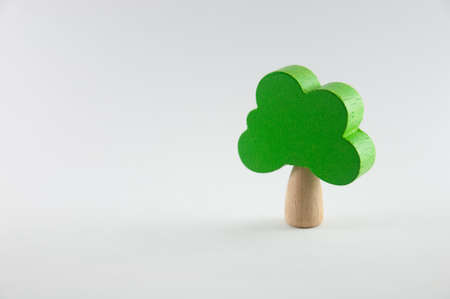 Green wooden toy tree on isolated white background