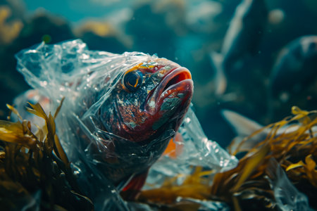 Marine life in peril fish trapped in fishing net, a grim consequence of human waste