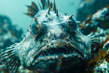 Close Up of a Scorpionfish Camouflaging Amongst Coral on Ocean Floor Marine Life Underwater Photography AI Generative