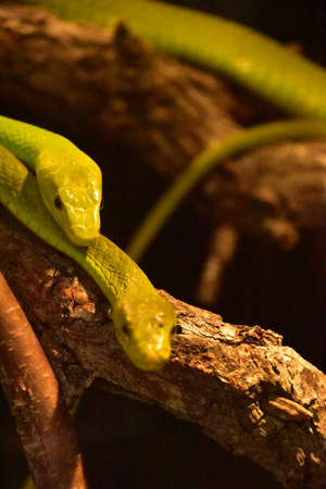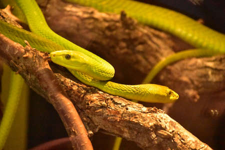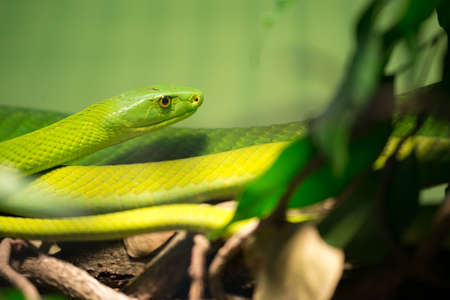 The Western Green Mamba (Dendroaspis viridis), extremely venomous snake native to Africa.