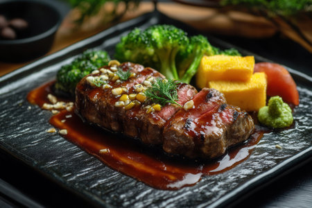 Deliciously cooked steak served with vibrant vegetables, creating a delightful meal that shines.