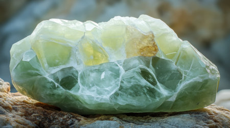 A close-up striking of emerald-hued mineral formations revealing intricate translucent layers and organic fractures, perfect for exploration and collection.