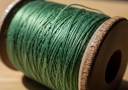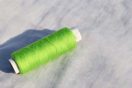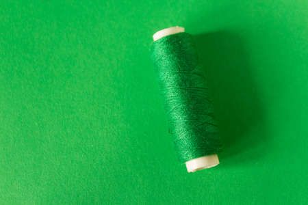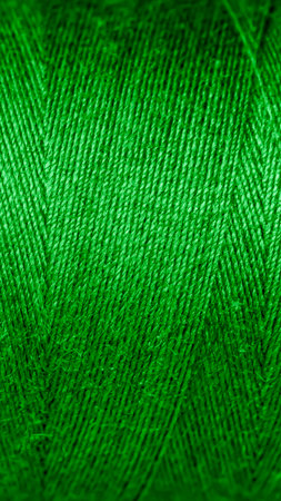 Macro view of green thread wound on a spool