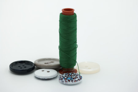 threads and button on green background.