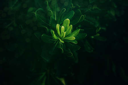 Green leaves dark tone with bokeh, abstract nature background