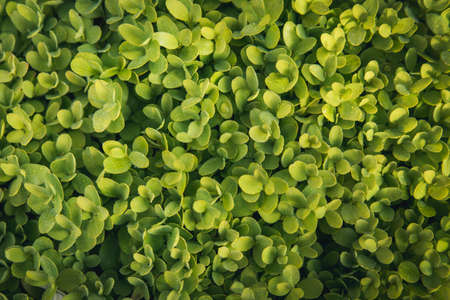 Top view of Sedum ewersii green gardenplant. Green leaves pattern background.