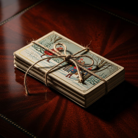 Beautifully designed greeting cards displayed on a wooden table in a cozy setting
