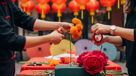 In China, people prepare for the new year by creating beautiful flower arrangements with vibrant orange and red blooms.
