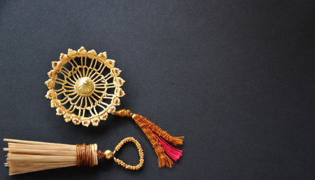 Chinese New Year decoration on yellow background, copy space, close-up.
