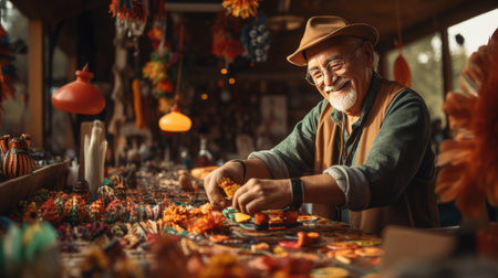 With focused precision, an artisan's experienced hands meticulously thread colorful beads, transforming tiny elements into a vibrant piece of wearable art.