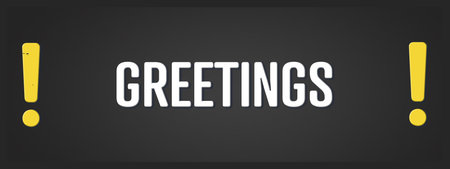 Greetings. A blackboard with white text. Illustration with grunge text style.
