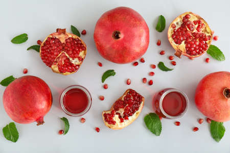 Composition with fresh pomegranate juice on light background