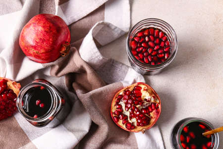 Fresh Pomegranate Juice on a Light Background Studio Photo