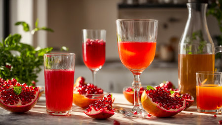 Pomegranate fruit and homemade juice for a healthy summer refreshment