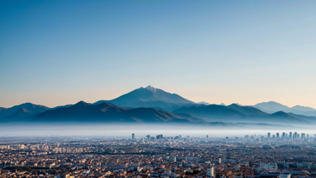 Panoramic view of the city and distant mountains