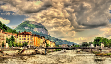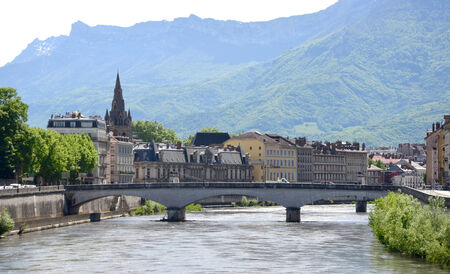 Cityscape view with river and bridge in Grenoble city on the south-east of France