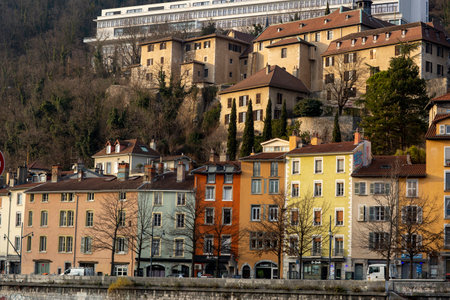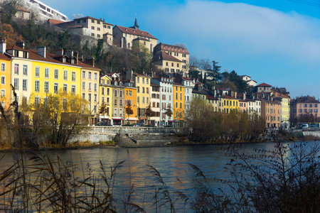 Morning cityscape view on the old town with mountains and river in Grenoble city on the south-east of France