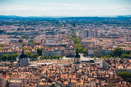 Lyon panorama elevated view on sunny day. Aerial panoramic view of Lyon with the skyline.