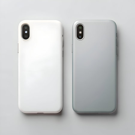 Two modern smartphones with blank screens. one white and one grey. mockup design for app and website presentations. technology. advertising. and mobile device concepts.