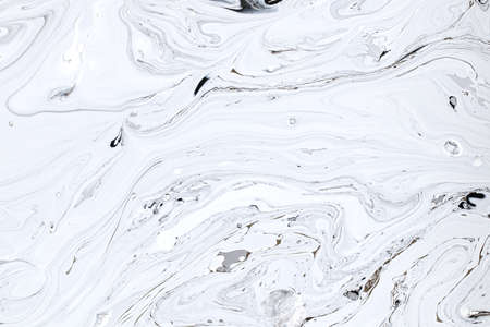 abstract background pattern texture, white and black mineral oil marble painting on water, stone blob concept