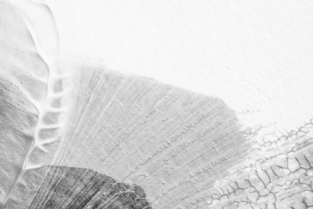Top view of a black and white abstract background with plenty of copy space on the left side.