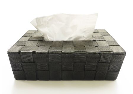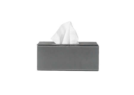 galvanized or zinc tissue box with folded napkin easy to use on the table, white background, copy space