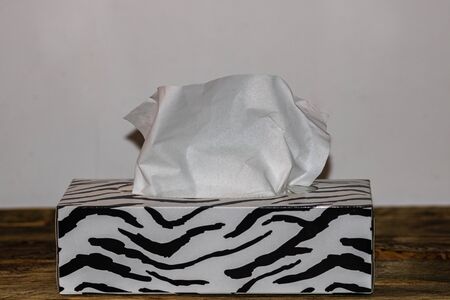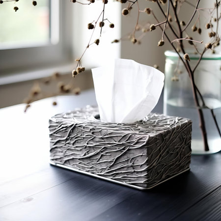A napkin box with tissue on a simple table, with soft, natural lighting adding warmth to the clean, minimalist setting.