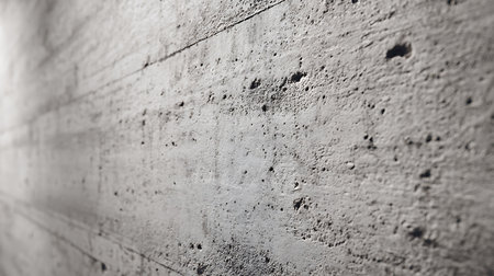 Extreme close-up shot showcases a light gray concrete wall featuring small imperfections, including pits and rough textures. Shallow depth of field adds visual interest.