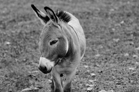 Donkey portrait in black and white.
