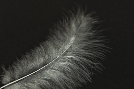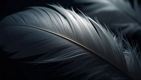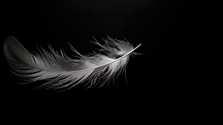 Explore the elegant beauty of a soft feather displayed against a black background. This close-up captures the intricate details and textures, embodying serenity.