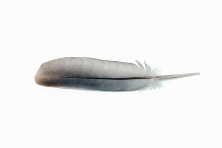 pigeon feather close-up on a white background