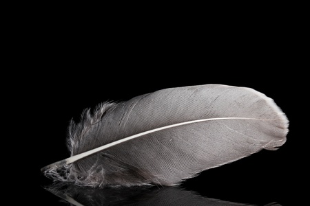 feather of a bird on a black background, close-up