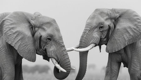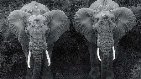 Graceful Giants: Captivating Monochrome Photograph of African Elephants in Chobe: A Breathtaking Bot