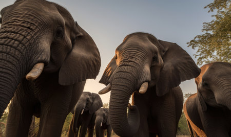 Endearing elephant captures a heartwarming selfie with its trunk in frame. Creating using generative AI tools