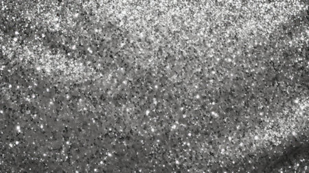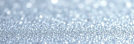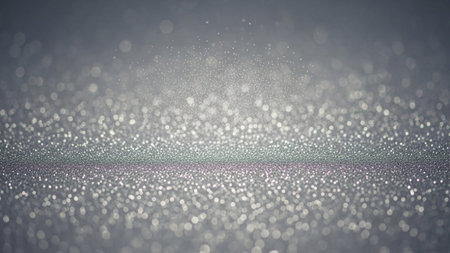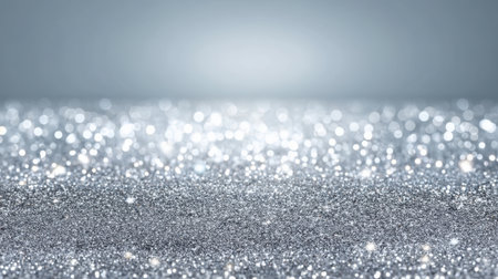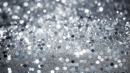 Close-up of sparkling silver glitter on a softly blurred background creates a mesmerizing bokeh effect, perfect for artistic designs and festive celebrations.