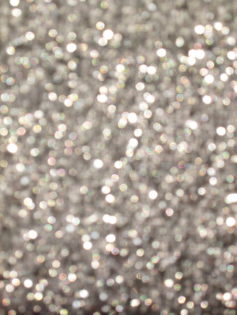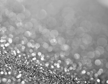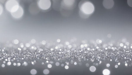 Sparkling silver glitter background featuring the glamorous bokeh effect for festive light compositions.