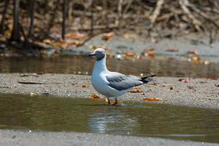 A Grey-headed Gull standing in shallow water