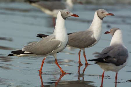 Grey-Headed Gulls standing on the shoreline