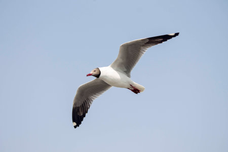 Brown-headed Gull on lake,Migratory seagulls flock to the Bang Pu Seaside, Thailand during November and April.