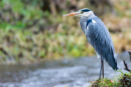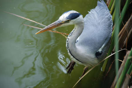 Gray Heron (Ardea cinerea) standing in a pond in Zurich, Switzerland
