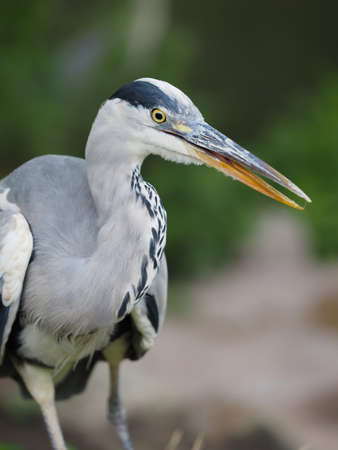 Close up portrait of Grey Heron (Ardea cinerea). Wildlife in natural habitat