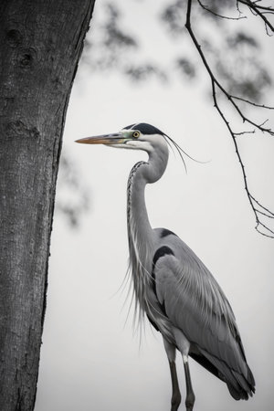 AI Generated. The great grey heron was nesting in a lofty tree when it was perched there
