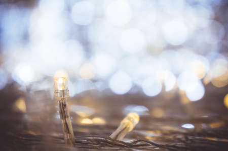 the nigt light bokeh festival with small LED light decor on party night christmas or new year background