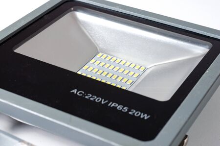 Close-up of aluminum 20 watt solar led diode light luminary new generation on white background