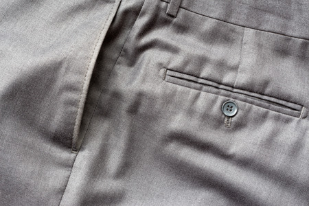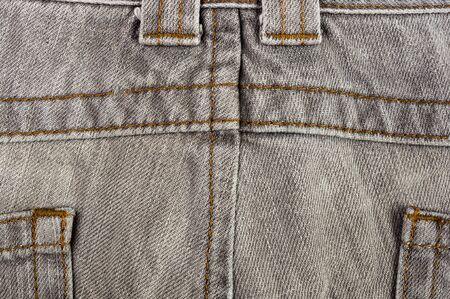 clothing items washed cotton fabric texture with seams, clasps, buttons and rivets, macro, close-up