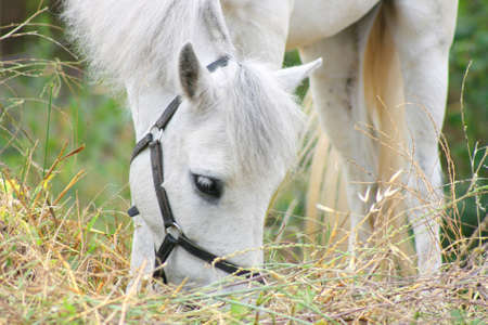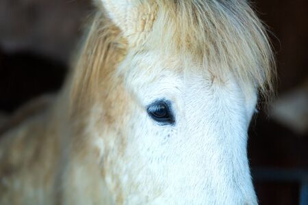 Portrait of beautiful white cute horse. Cutest white horse portrait, lovely face