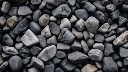 Black stones background, top view with varying sizes and textures, ideal for a zen ambiance.